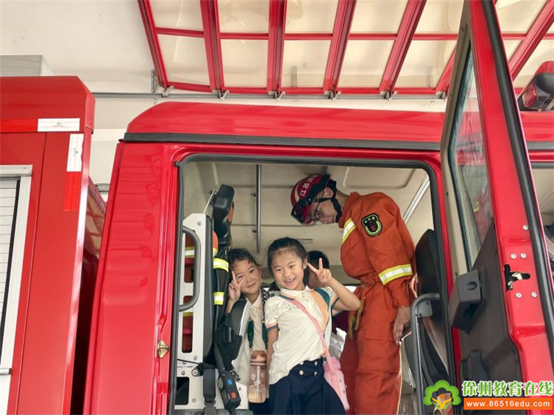 循着声音,小朋友们看到了高大威猛的消防车上的消防员叔叔。