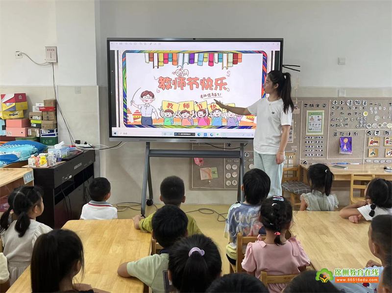 小班幼儿通过PPT和动画等方式知道了9月10日是我们中国的教师节,也激发了他们关心关爱老师的情感。