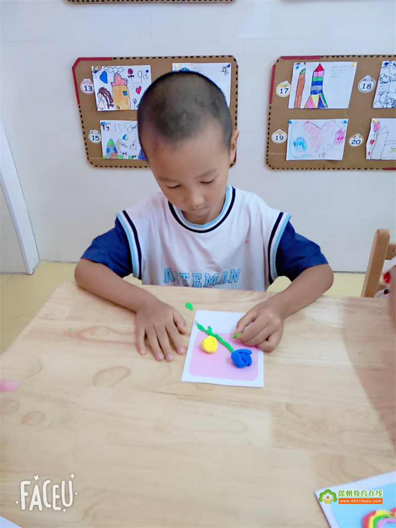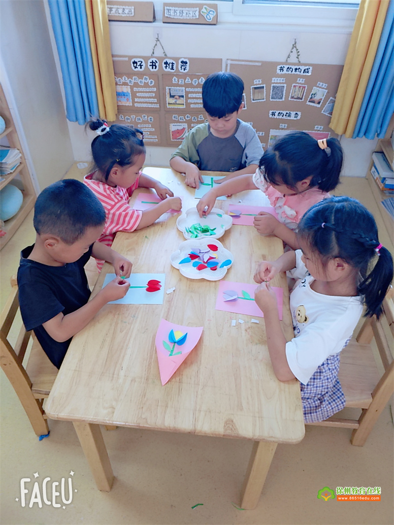 大班幼儿通过观察记录教师一天的工作,理解了教师工作的辛苦,孩子们还自己制作了爱心贺卡和手工花束表达对老师节日的祝贺。