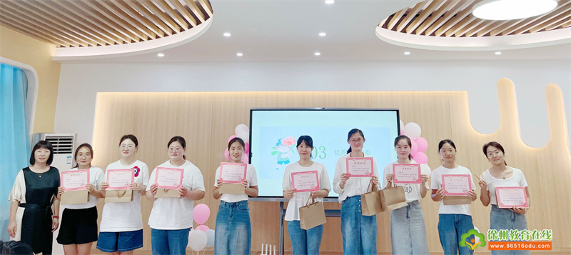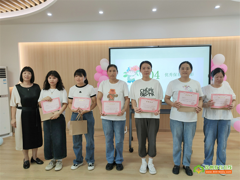 今年又涌现出许多优秀的教职工,她们在平时工作中表现出色,兢兢业业,在自己平凡的工作岗位上努力着。他们是我们的榜样和骄傲。敬爱的张园长为老师们颁发了奖状和奖品并合影留念。