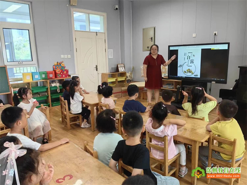 老师们给小朋友讲有关白露的知识,孩子们听的特别认真。
