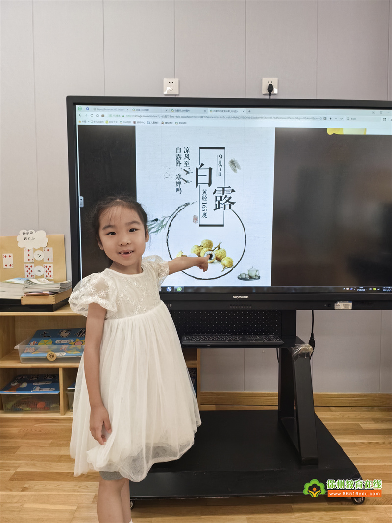 此活动的展开,加深了幼儿对于中国传统文化的认知,更加了解二十四节气中的白露。让幼儿在活动中感受到二十四节气的有趣和欢乐,同时激发幼儿进一步探索国家民俗文化的兴趣,加深孩子们对于中国传统节日的热爱之情。