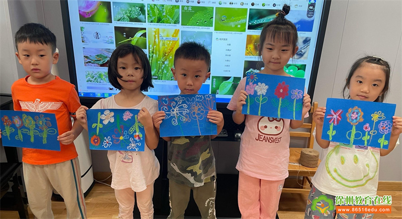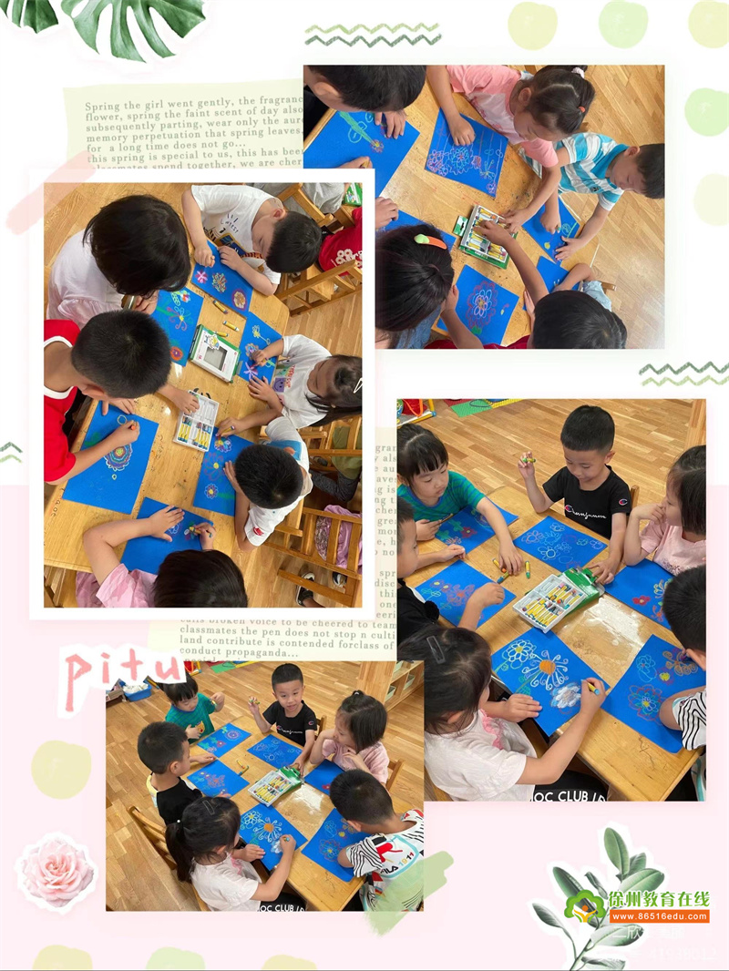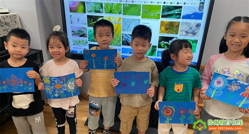 中大班宝贝通过绘画的方式绘画菊花,来感受秋天的美丽。