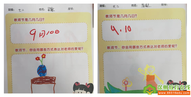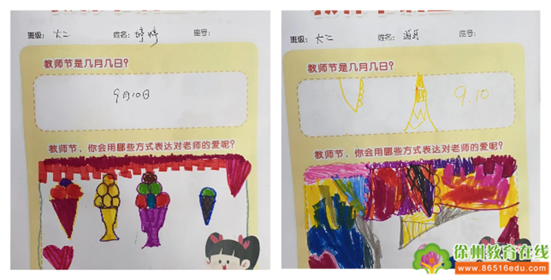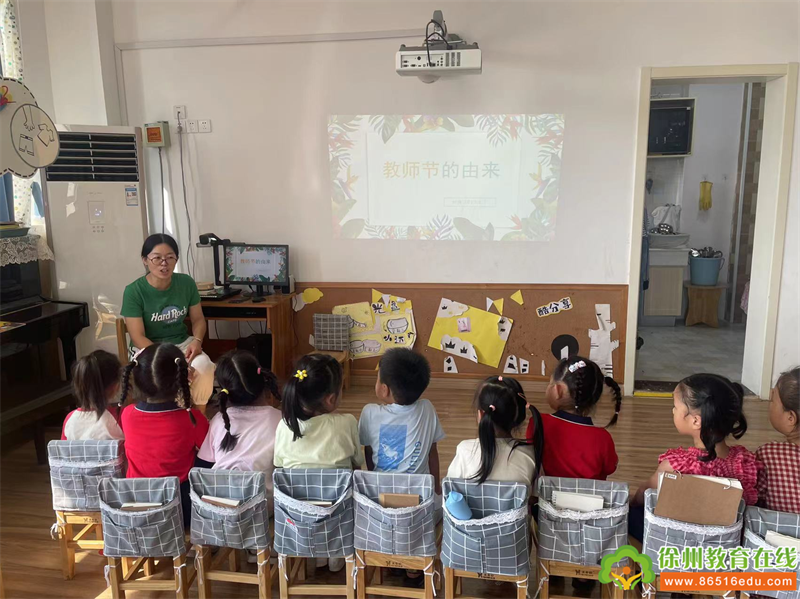 九月,把光阴分为两半 一半为明媚,一半为清爽 秋天,是收获的季节 也是耕耘者的节日 九月十日, 在这个特别的日子里, 豆丁园里一群可爱的孩子和老师们, 一起度过了这温馨、美好的节日! 童言童语话真情 “陪伴是最长情的告白” 老师们陪伴着孩子走过 一年、两年、三年...... 每一个瞬间都是难忘而又美好的。 在今天,孩子们有太多太多话想对老师说 幸福的爱意总是来源于孩子稚嫩的声音。 一句“老师,我爱你” 一句“老师,您辛苦啦” 都是孩子们在向老师诉说着自己的爱意。 我和老师的第一张合影 “什么是教师节?我们可以怎么祝福老师?” 刚入园的萌娃们还懵懵懂懂, 但是一个甜甜的微笑、一个大大的拥抱、 一个一羞涩的亲吻、一句爱的悄悄话、 一张珍贵的合影…原来祝福就是这样简单而美好。 亲一亲,抱一抱,老师我爱你~ 今天要和老师们定格这美好的瞬间, 拍下和老师的第一张合影。 我眼中的老师 你心中的老师是什么样子的呢? 你的老师都有哪些本领呢? 问题一抛出,孩子们你一言我一语的在交流 “我的老师戴着圆圆的眼镜...” “我的老师喜欢穿长裙子” “老师的头发长长的,喜欢扎马尾辫...” “我的老师会画出好看的画...” “跳舞最好看的就是我的老师..” “我想送给老师一个大大的拥抱” “我想送给老师一朵花...” “老师,我想画一画你……” 孩子们发挥想象力 用五彩斑斓的画笔画出自己最爱的老师。 他们笔下的老师是什么样的? 温柔可爱,还是是幽默帅气? 严肃认真,还是博学多才? 我们一起去探个究竟吧! 童心画语表爱意 每一个孩子身上都蕴藏着 无限的创造力和天马行空的想象力。 一笔一划皆为真情流露, 把自己的感情注入礼物之中。 制作出一份独一无二只属于老师的礼物。 专注的眼神、灵巧的小手, 制作出一幅幅精美的作品。 你看我的作品好看吗? 一张张贺卡、一朵朵小花, 承载着孩子们满满的爱; 瞧,小小的爱心卡片上 画满了孩子们深深的祝福, 送给了最爱的老师。 贺卡送给亲爱的老师, 说一声:“老师,您辛苦了,谢谢您。” 孩子们除了送给老师温暖的祝福、大大的拥抱 用自己学到的本领积极地帮助老师, 向老师表达了节日的祝福。 “我会帮助老师擦板凳、摆餐盘...” 小小记者在行动 “老师们上班时带着我们学本领、做游戏, 那他们下班都在做些什么呢?” 在教师节的时候,孩子们很好奇老师们的工作, 更想要了解老师、走进老师。 于是,小记者们拿着采访稿出发啦~ 小记者们出发啦,开始采访老师啦! 亲爱的老师!谢谢您的陪伴与付出!我爱您~ 亲爱的孩子们 谢谢你们记忆里有那么多与我们的快乐时刻 谢谢你们充满温暖和诗意的话语 谢谢你们与我们一起度过这个教师节 在这个节日里,老师们收到了宝贝们满满的爱! 丁幼的老师们将不忘初心、继续用爱与坚持, 滋润每一个幼小的心灵。 祝所有的老师们教师节快乐!