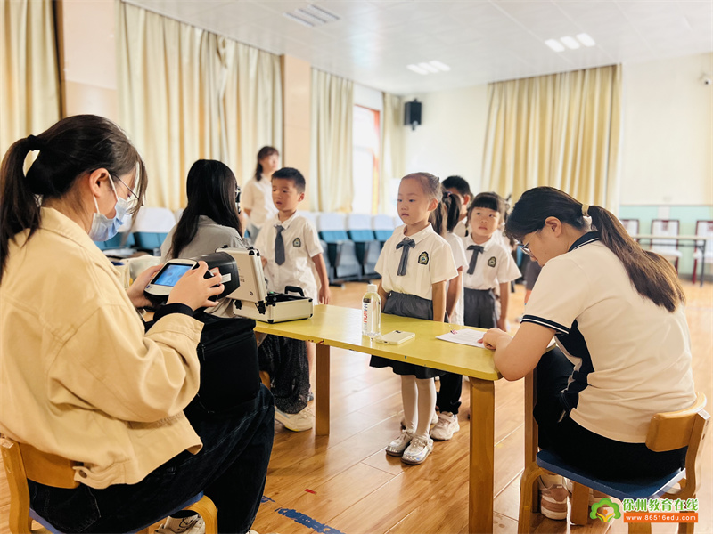 幼儿阶段是视力发育的重要时期,然而随着科技发展,各类电视、电脑、手机的遍及,幼儿的视力普遍下降。面对幼儿近视呈现高发、低龄化趋势的现象,为精准掌握在园幼儿视力健康状况和视力变化情况,促进幼儿健康成长,9月13日徐州市第一人民医院眼视光中心王小娟博士团队来到我园对幼儿进行眼外观、眼位、屈光等视力检查。
