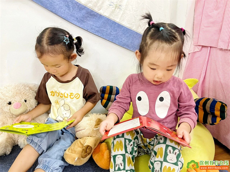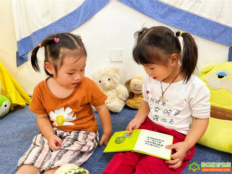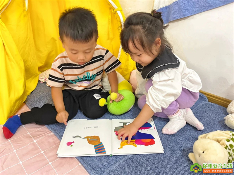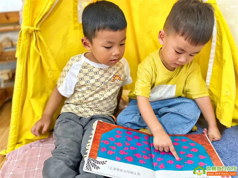看!阅读区的小朋友们在分享绘本故事,在阅读的过程中孩子们潜移默化的学习使用文明、规范的语言和文字。