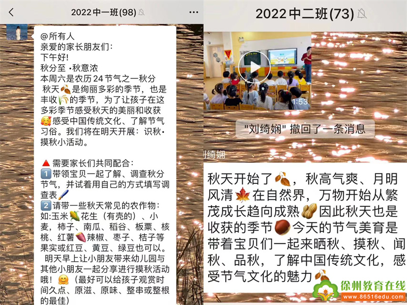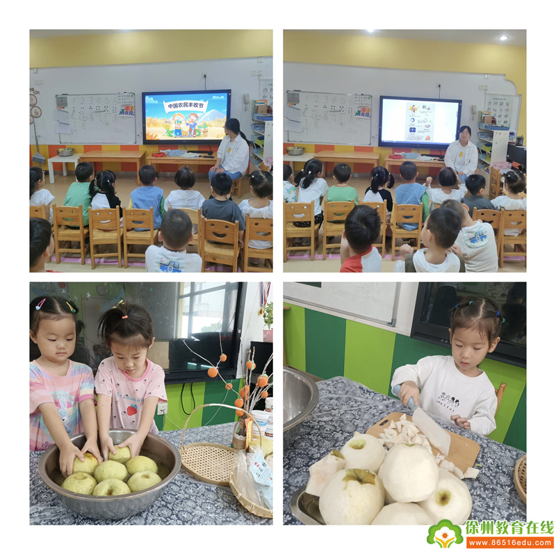“秋分”是我国农历二十四节气中的第十六个节气,时间一般为每年的9月22-24 日,今年秋分为 2023年9月23日,寓意秋季中间,昼夜等长。秋分时节,风和日丽蟹肥菊黄,正是一派瓜果飘香谷满仓的丰收景象。为了让孩子们了解秋分、感受秋分,华城幼儿园开展了“秋分至,秋意浓”的主题活动。