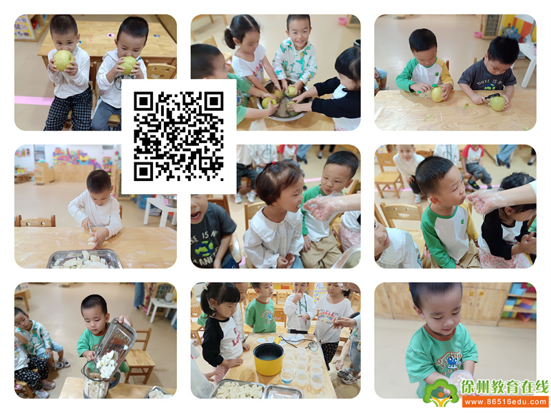 秋天正是梨子成熟的季节,梨子多汁,在传统的药食同源理论中,梨子清热去火,清肺止咳,用其熬煮成梨汤加入白涼粉做一份高颜值的秋梨冻再合适不过。小班的宝贝们通过、视、听、嗅、味触觉的体验同时收获来自生活的体验。