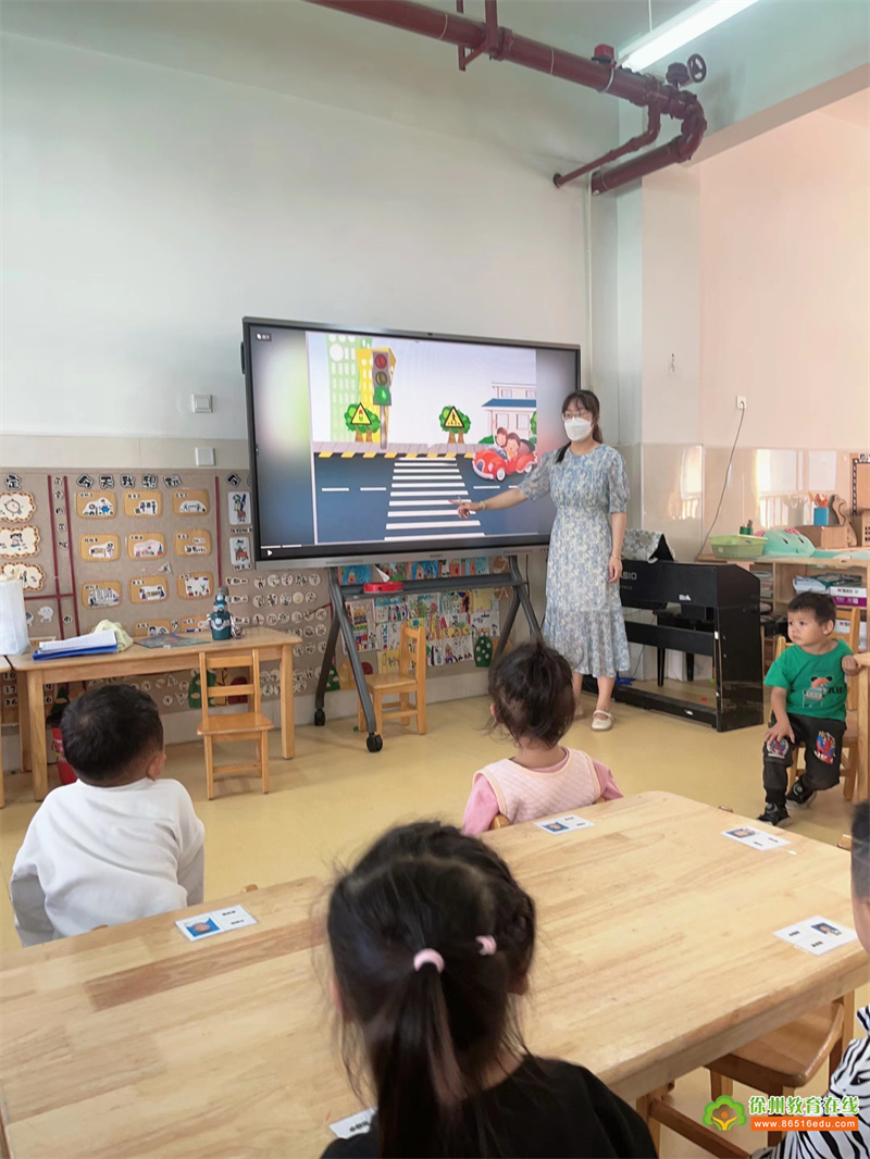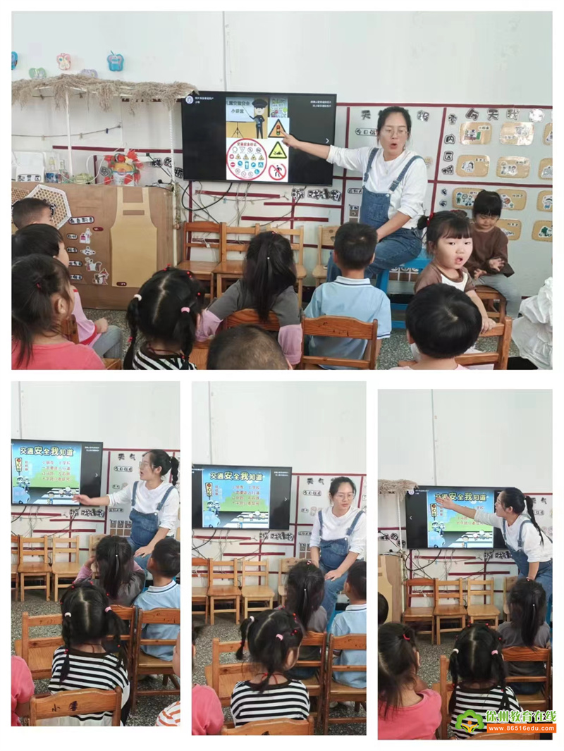 各班老师结合本班幼儿的年龄特点,利用儿歌、安全小故事、游戏、观看视频等多种形式引导幼儿认识了各种交通标志,对幼儿进行交通安全宣传,让幼儿了解交通知识,明白遵守交通规则的重要性,将安全教育融入到幼儿的一日生活中。