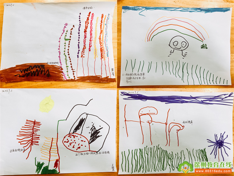 孩子们通过摸一摸、闻一闻,再从小草的颜色、整体外形、叶子形状、气味、等细节深度认识了各类小草,并且用自己的方式将探索的结果记录下来与同伴进行了交流、分享,趣味无限,更是萌发了对于种植园新的探索体验的欲望。