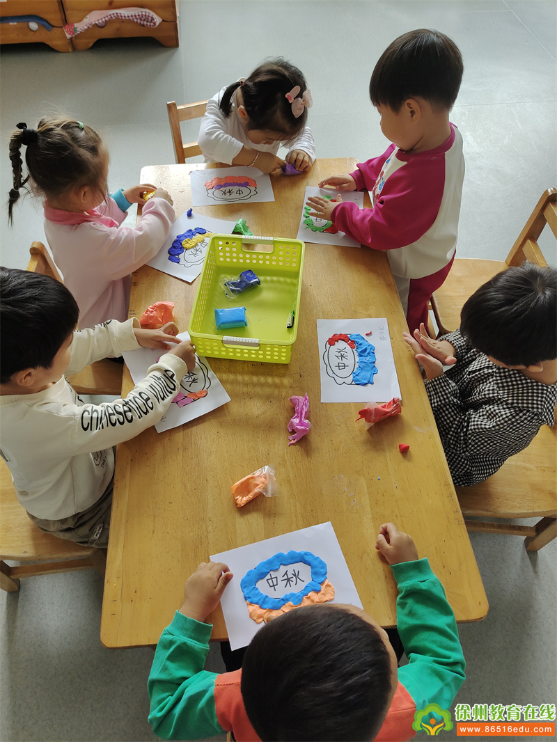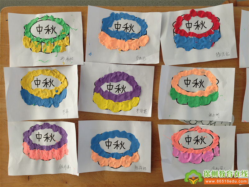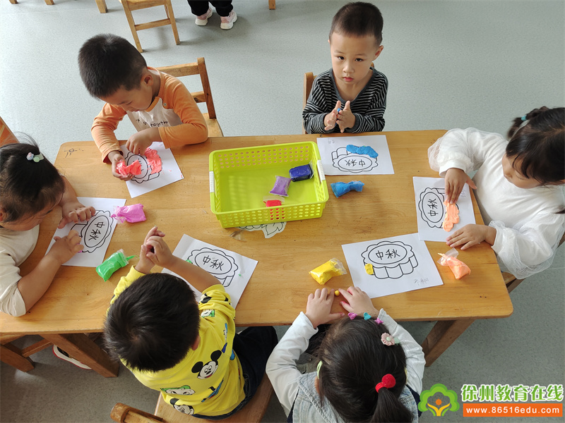 教师为每个幼儿发一个月饼的底板,然后拿出各种颜色的彩泥让幼儿进行制作属于自己的独一无二的“月饼”。孩子们通过压、按、搓、揉、点等方式一步一步的制作自己的月饼,认真极了!不一会儿,香甜可口的“月饼”就大功告成啦!月圆人有寄托相思,祈盼丰收之意,还有“赏月过不中秋是什么?在孩子们的眼里,是团在手里的月饼,是圆在夜空的月亮,是老师、同伴、爸爸妈妈的陪伴。但无论它是什么,我们都希望能通过每一年的中秋节活动,在孩子的童年里留下一抹属于我们中国的、传统的、民族特有的节日印记,一代一代传承下去。