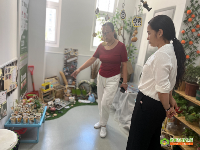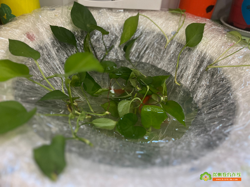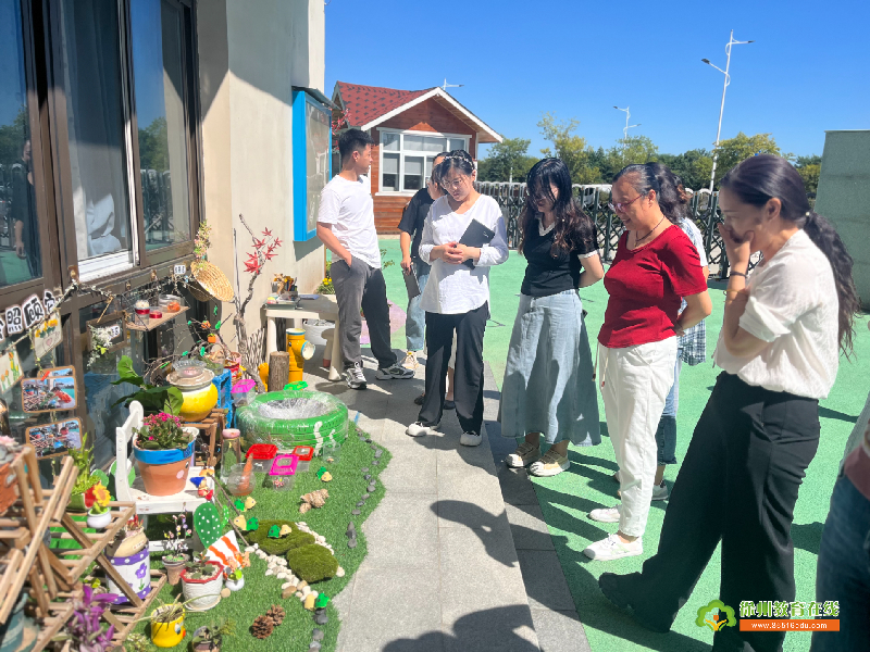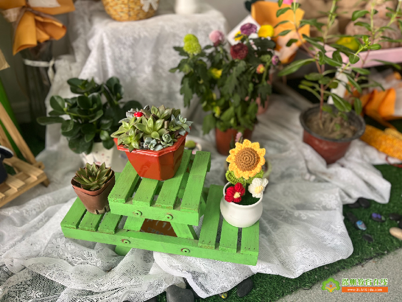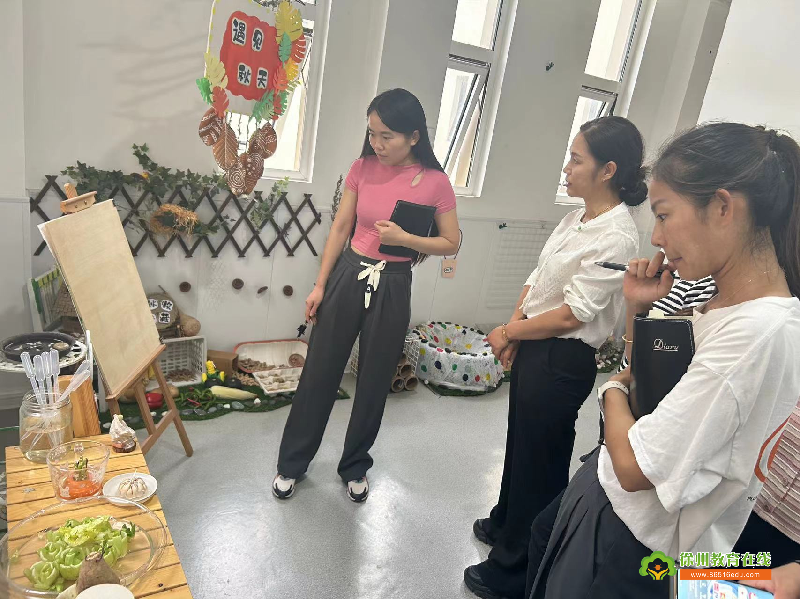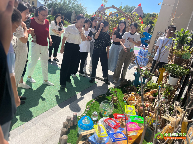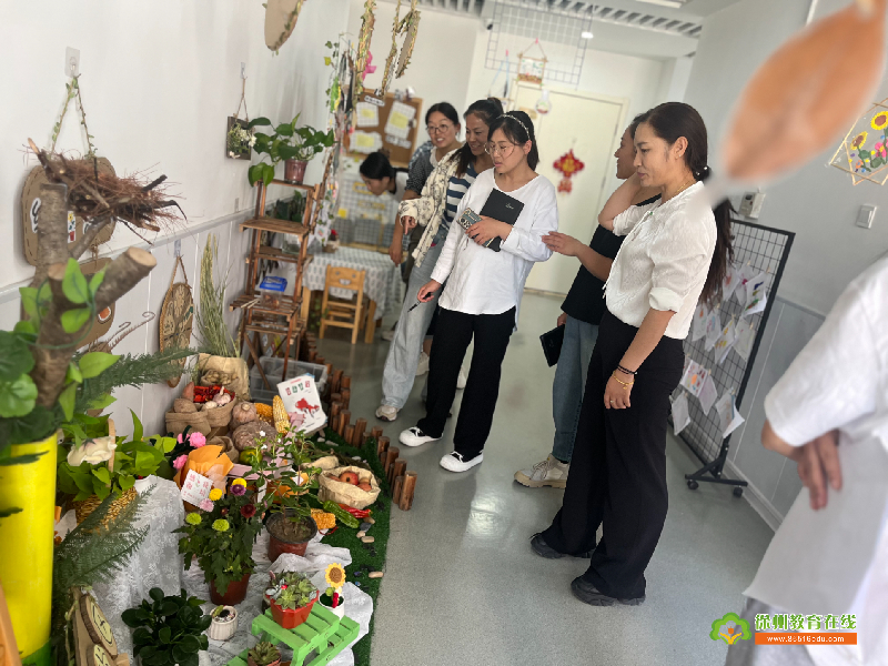 各班老师介绍本班植物角的创设理念,根据孩子们的想法,带领幼儿一起布置本班的植物角。从观赏区、水培区再到土培区,各班不仅将植物角打理得井然有序,还根据晒秋等主题进行了不同的区角创作。