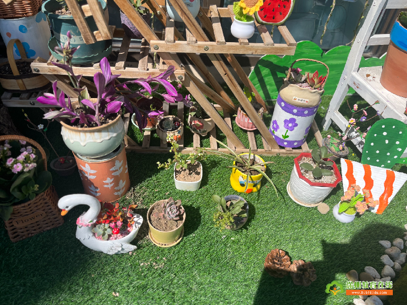 秉着季节性、艺术性、探索性、丰富性、参与性的特点,各班都创设了具有本班特色的自然角。在创设自然角的过程中,各班还因地制宜,积极调动家长和幼儿一起收集并选用生活中的食品罐、奶粉罐、洗衣液瓶等废旧材料,制作器皿,给植物“安家”,培养孩子节约、环保意识。活动中幼儿积极参与自然角种植,种植区、养殖区、观赏区各具特色、应有尽有,到处是一派生机勃勃的景象,生命之绿呼之欲出。
