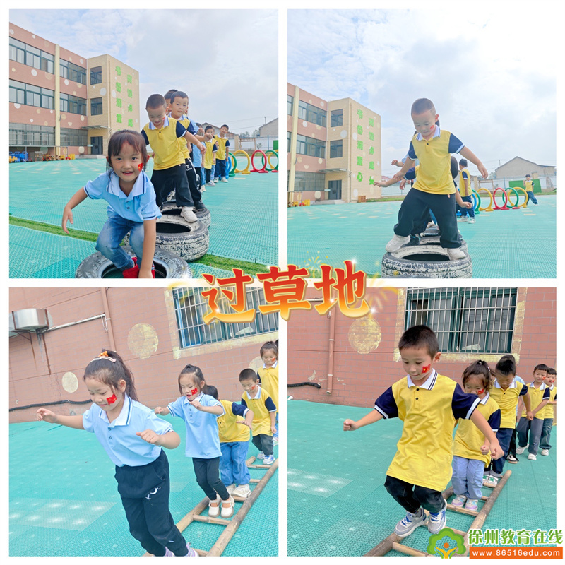 传承红军不畏艰难,拼搏向上的精神,小朋友们看着“荆棘丛生”、“布满沼泽”的草地,不怕困难,勇往直前,过了草地。