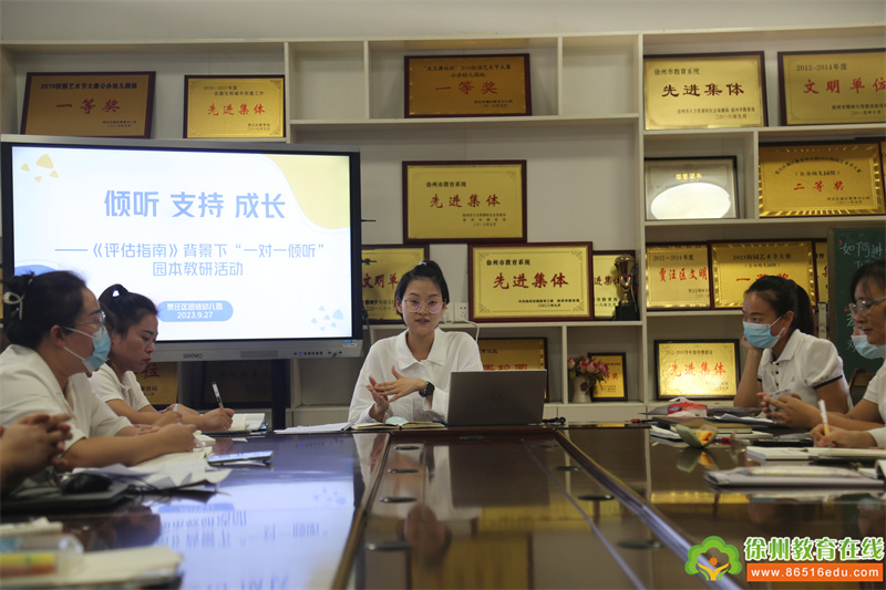 为更好的践行“一对一倾听”教育理念,解决老师们在教育实践中的困惑及存在的问题,发挥“一对一倾听”在幼儿一日生活中的的价值,贾汪区团结幼儿园与四有好教师共建团队紫庄镇杜楼幼儿园联合开展主题为“倾听 支持 成长”的园本教研活动。