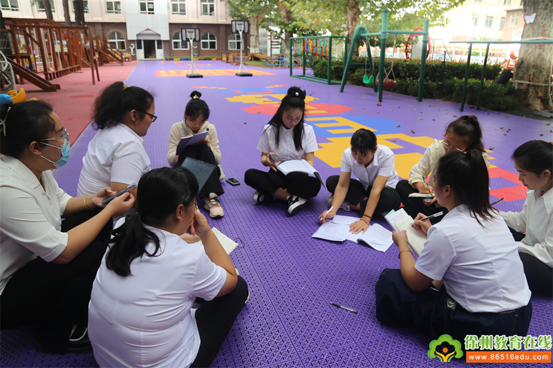 对于刚入园不到一个月的幼儿来说,学会完整表达尤为重要,小班组教师们通过情景再现的方式完美呈现了现阶段小班幼儿存在的共性问题:如何发展幼儿语言表达能力?老师们来到户外团座讨论交流,得出解决策略。