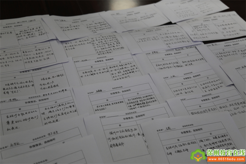 对于每一位老师来说,学会倾听都是一项重要的基本功,是一场专业的修炼。那么,老师们对于“用心倾听前”“用心倾听后”有些什么改变、感悟呢?她们在现场用笔、用心留下了自己的体悟。