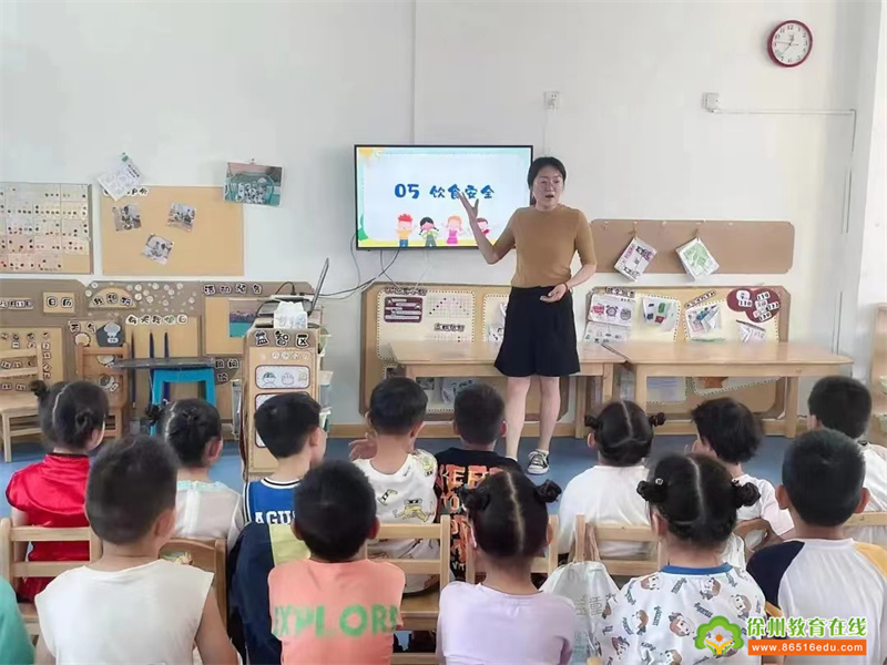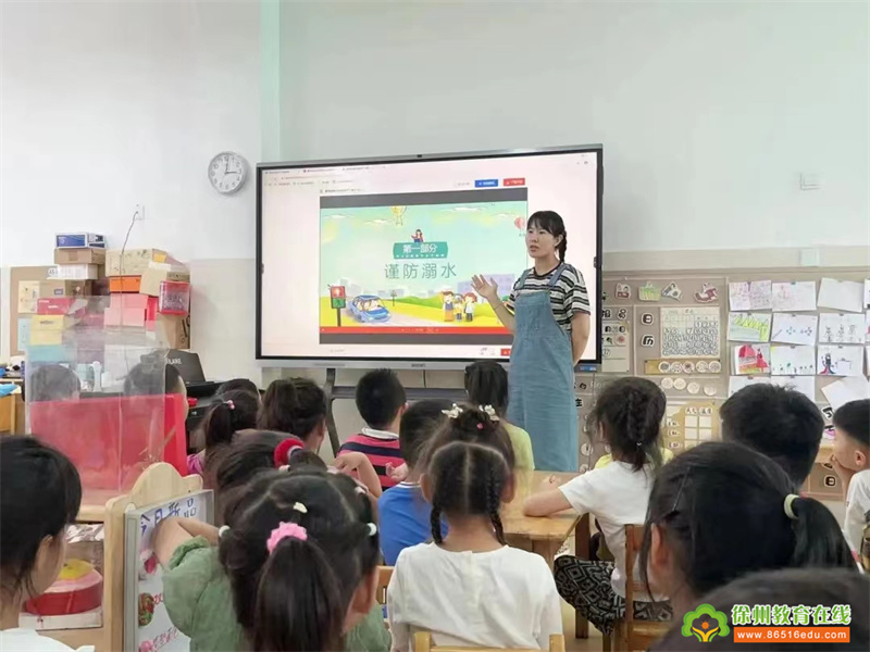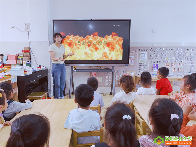各班教师结合本班孩子的年龄特点,通过观看视频和安全知识宣传讲解,从交通安全、消防安全、防溺水安全、防止意外伤害、饮食和饮用水卫生等几方面对幼儿进行了集中安全教育。