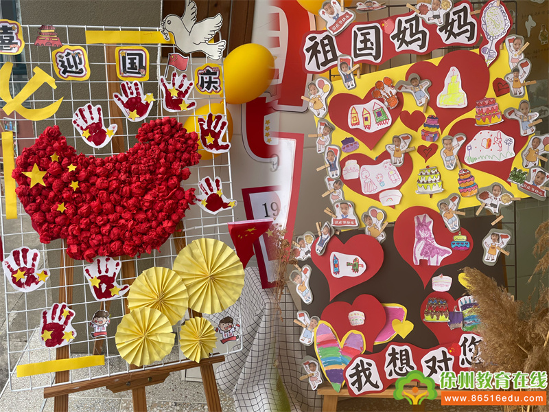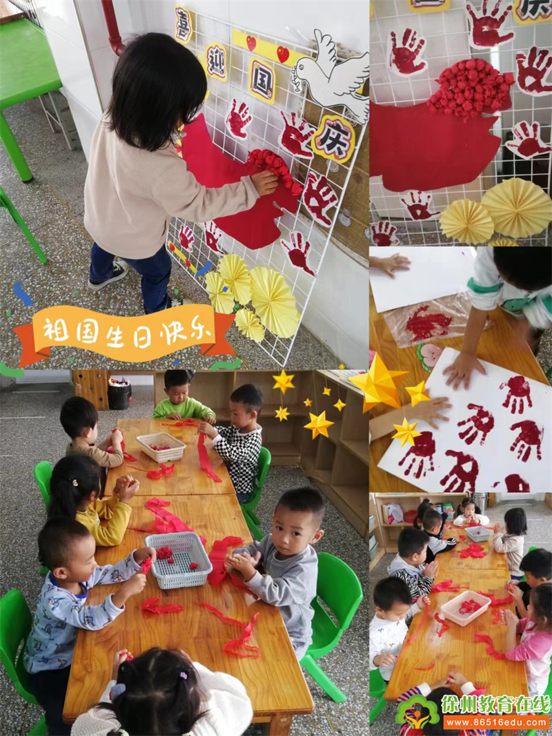 区角游戏中,幼儿通过自己的小手制作了送给祖国妈妈的生日礼物,并与老师一起布置幼儿园门厅,使幼儿园充满了浓浓的节日气氛。