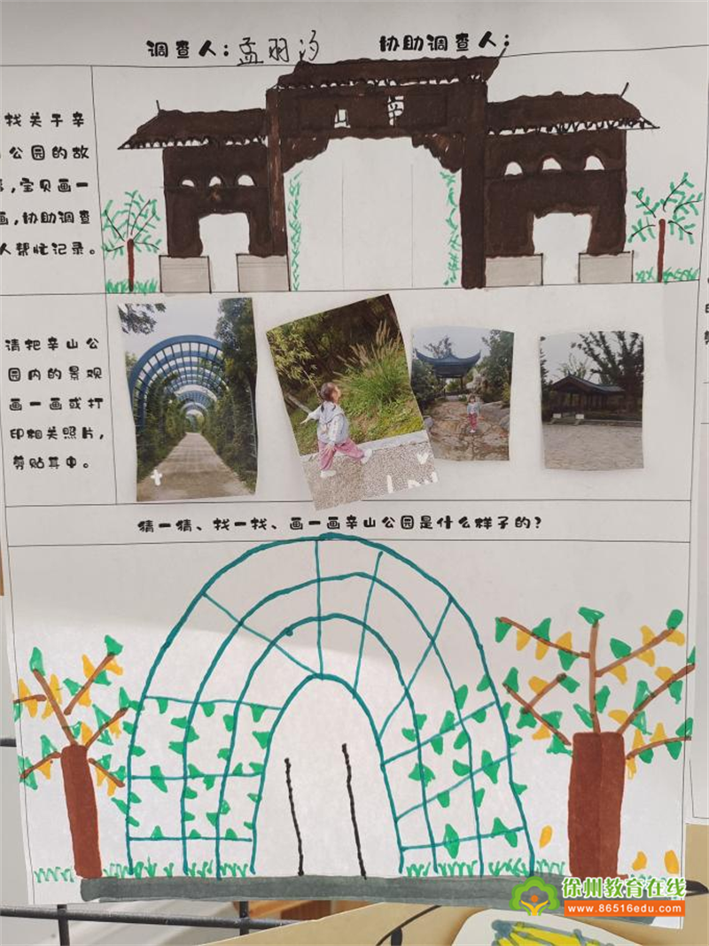 孩子们通过调查表、绘制、游园……多种形式开始了他们的探秘之路。