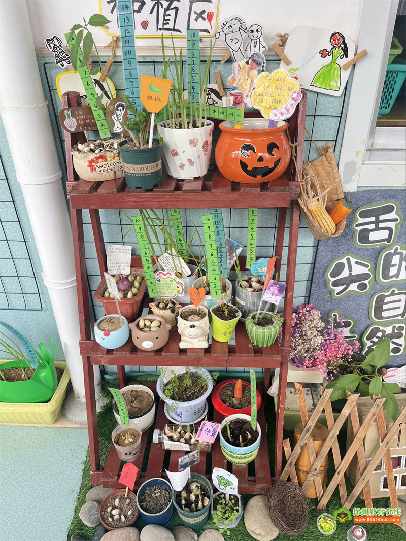 种植区里,小小的生命在种植区中慢慢地生长着。“你好!蒜宝宝”、“遇见花生”...... 在阳光、水、土壤的加持下,种子呈现它的生长天赋,而这一切奥妙都会在孩子心里生根发芽。