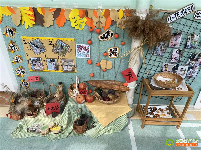 结合主题活动,教师与幼儿共同收集各种秋收农作物,辣椒、花生、玉米、丝瓜、柿子、红薯、土豆……鲜艳夺目的瓜果蔬菜,品种丰富的各类干果;小朋友们看一看,摸一摸,讨论如何运用这些农作物做出可口的美食。同时,感知秋天的变化和丰富,体会到丰收的喜悦。