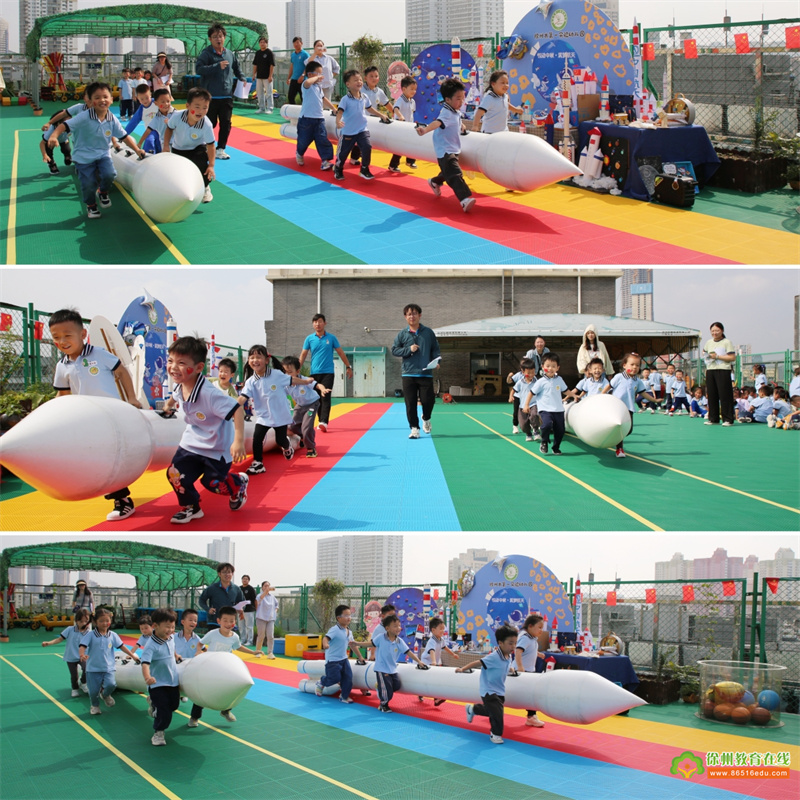 近日,一实幼中班年级组开展了“悦动十月·筑梦航天”趣味运动会,旨在引导幼儿感受中国航天事业的伟大,以运动点亮孩子的“航天梦”,激发“强国有我”的民族自豪感和文化自信。 在欢快的气氛中,本次运动会取得圆满成功。孩子们不仅锻炼和提高了身体的灵活性和协调性,也培养了坚强、勇敢、不怕困难的意志力以及乐观、团结、合作的积极态度。强国有我,共筑希望,祝福祖国,繁荣富强!