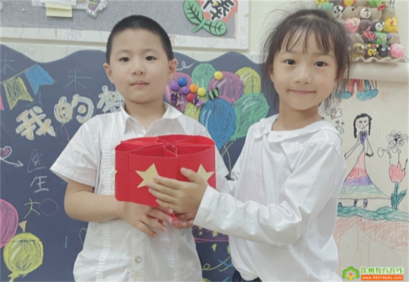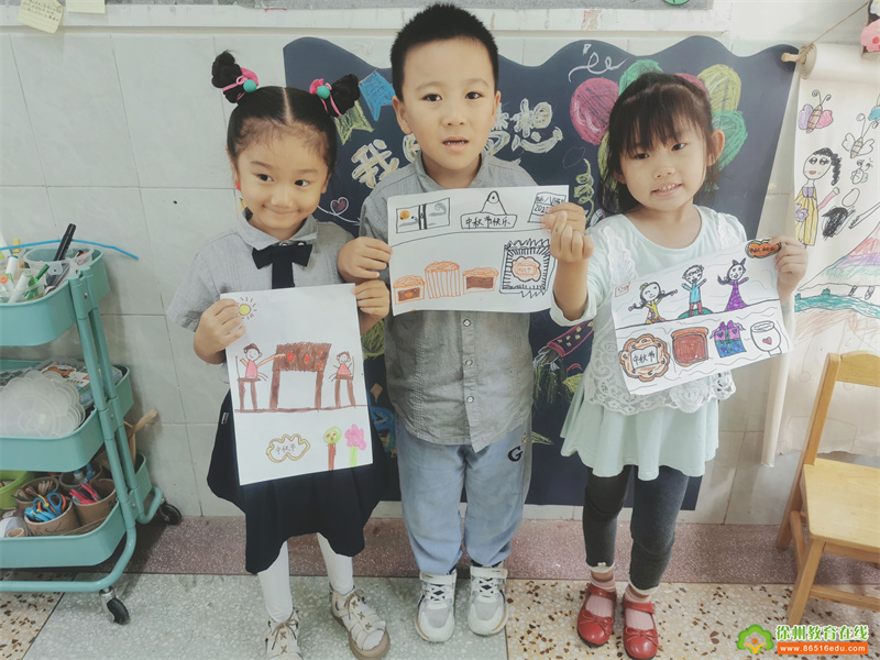 沐浴着月色清辉 和平的白鸽衔来 一枚橄榄叶 国之兴盛的国庆 家之团圆的中秋 在机关幼撞了个满怀 ——爱国浓情—— 国家、国旗与历史 从老师们的口中缓缓道来 我们在时光中倏忽来去 在这篇名为中国的土地上 唱响爱的童音 灵巧的双手 通过建构 表现出祖国的模样 通过手工 表达对祖国的祝福 画在笔下 国在心中 用画传情 以画示爱 祝福祖国繁荣昌盛 四大发明 智慧灯塔 点亮每一双黑色的眼眸 ——月满中秋—— 我们动起手来 探究月宫的秘密 把“月宫”搬进教室 DIY的月饼 使团圆的甜蜜的舌尖留香 玉兔捣药、吴刚伐桂 绘本故事为我插上想象的翅膀 在金色的桂花香中翱翔 我要把这幸福时刻记录下来 命名为“团圆的幸福时光” ——节日祝福—— 我在心底反复默念着 热爱的语句 我爱您 我心中的国 我眼中的家 白鸽随着飘动的气球 飞向苍茫的大好河山 请你带着我们的爱与祝愿翱翔 总有一天 我们会踏遍你飞过的每一寸地方!