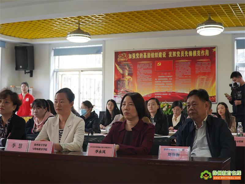 出席本次活动的有:徐州市基教处副处长裴洪光、徐州幼儿师范高等专科学校王宁副校长,徐州幼专学前与特殊教育学院王清风院长,徐州市儿童医院科教科科长高畅,泉山区教育局副局长傅惠文,泉山区妇幼保健计划生育服务中心副所长李永凤,醒狮社区副书记赵思雯。泉山区特殊教育指导中心校长童静担任本次主持。