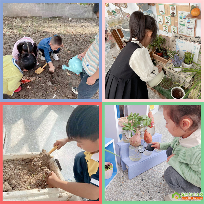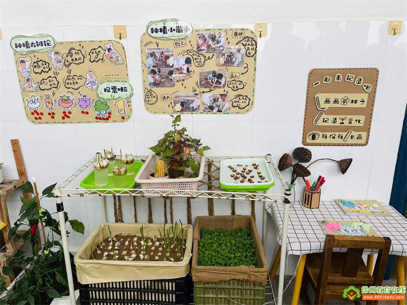 大班的自然角不仅是幼儿种植的乐园,还是幼儿探究、观察的天地,老师们注重幼儿的自主探究与多样的记录方式,并创设了有趣的实验区,在幼儿长期观察、共同管理、悉心照料和记录动植物的生长过程中,自然角成为了他们认识大自然的小窗口,探索自然的奥秘之门。