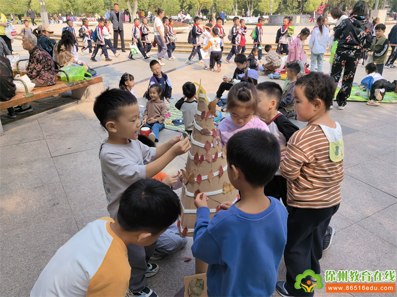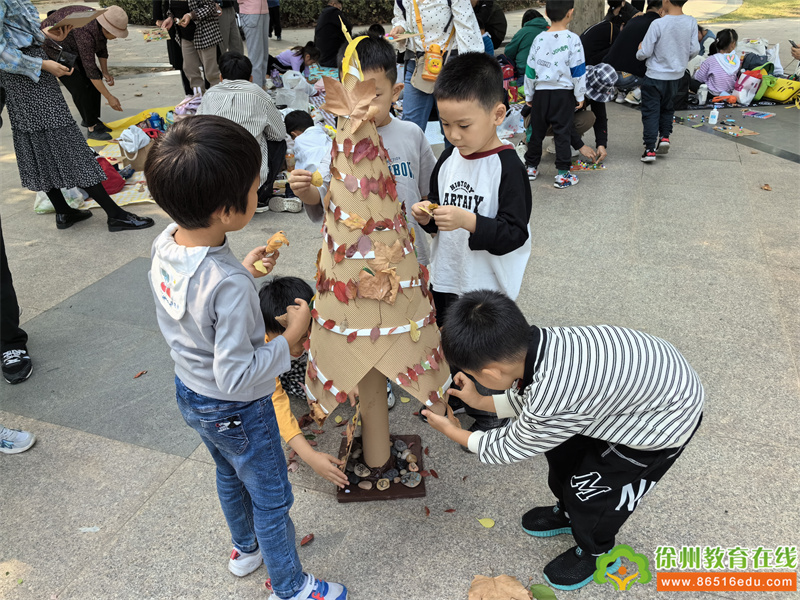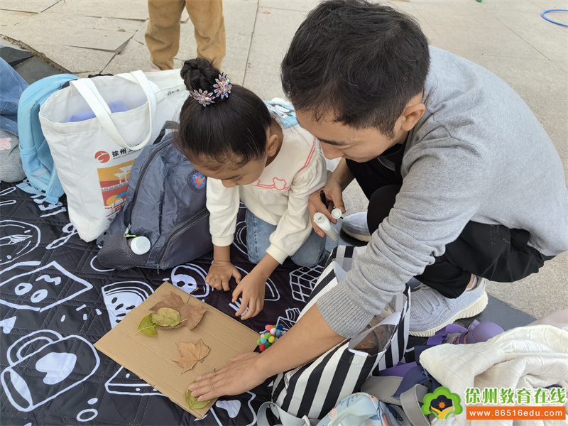 树叶到处飞呀飞···我们用飘落的树叶来作画,和秋天来一次亲密的互动。在各班级老师的有序组织下,孩子们或找寻着自然中的色彩,或发挥着天马行空的想象、或画出五彩斑斓的秋景、或用树叶创作着独特的作品......