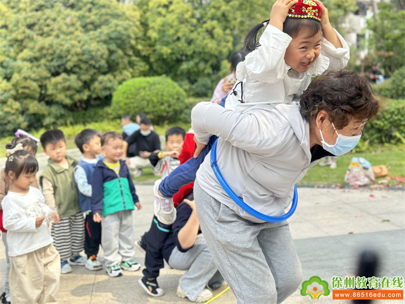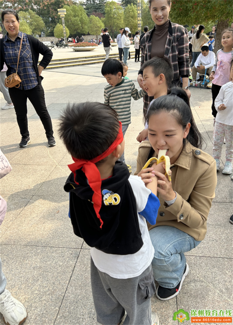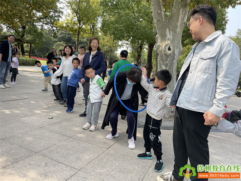 在接触大自然的同时,小朋友和大朋友们还一起进行了小兔子过河、袋鼠跳、熊出没、树上的柿子结几个、两人三足等多项亲子运动游戏,不仅增强了小朋友的体质,还更好的促进了亲子关系。