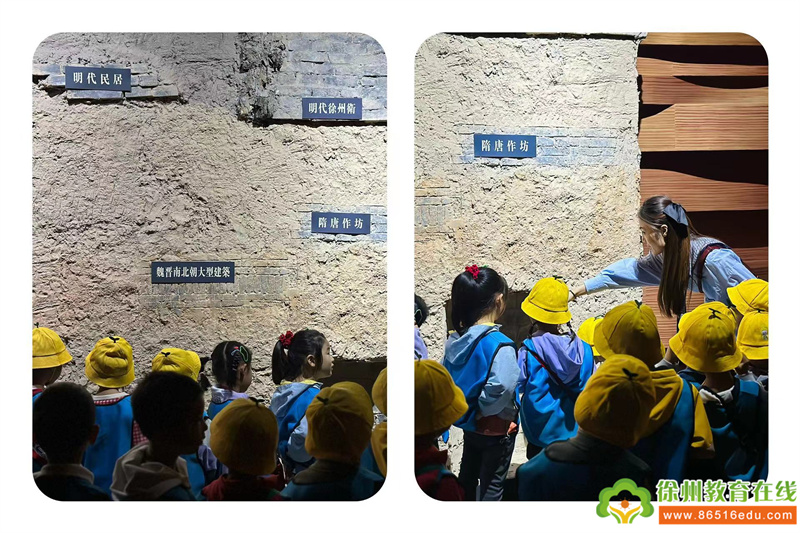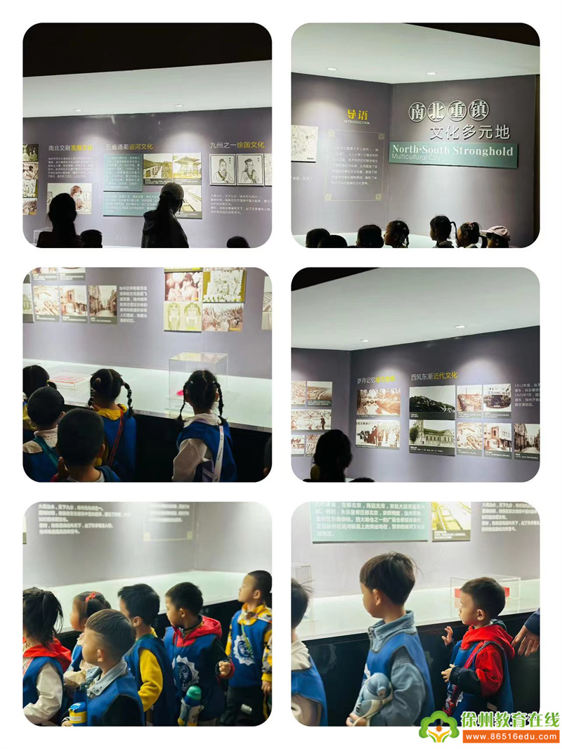 在规划展览馆讲解员姐姐的带领下,孩子们了解了徐州市城市规划中一些有趣的历史和文化,如九州之一徐国文化、五省通衢运河文化、南北交融淮海文化、西风东渐近代文化、以及岁月记忆城市激情等等。同时,通过历史建筑照片,如穿梭于历史时空中了解到徐州深厚的文化底蕴和源远流长的发展历程。