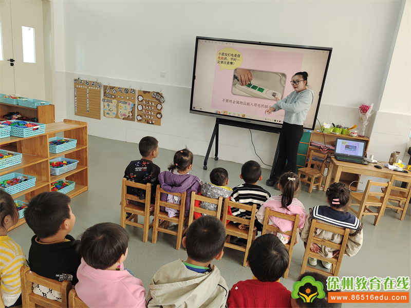 活动中,教师为了让幼儿懂得一定的防触电安全常识,教师根据幼儿的年龄特点,采用视频演示、图片、情境再现等形式开展集体活动,引导幼儿了解安全用电小常识,并且懂得触电的危险,知道不能随便碰触“电老虎”,不能随意操作各类电器,小心触电。