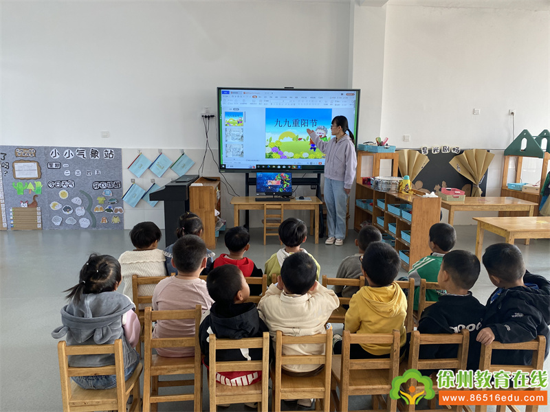老师通过讲故事、看视频、PPT等方式,让孩子们了解重阳节的由来和习俗,知道九九重阳节是给爷爷奶奶、外公外婆等老人过的节日,是中华民族一年一度的传统节日。