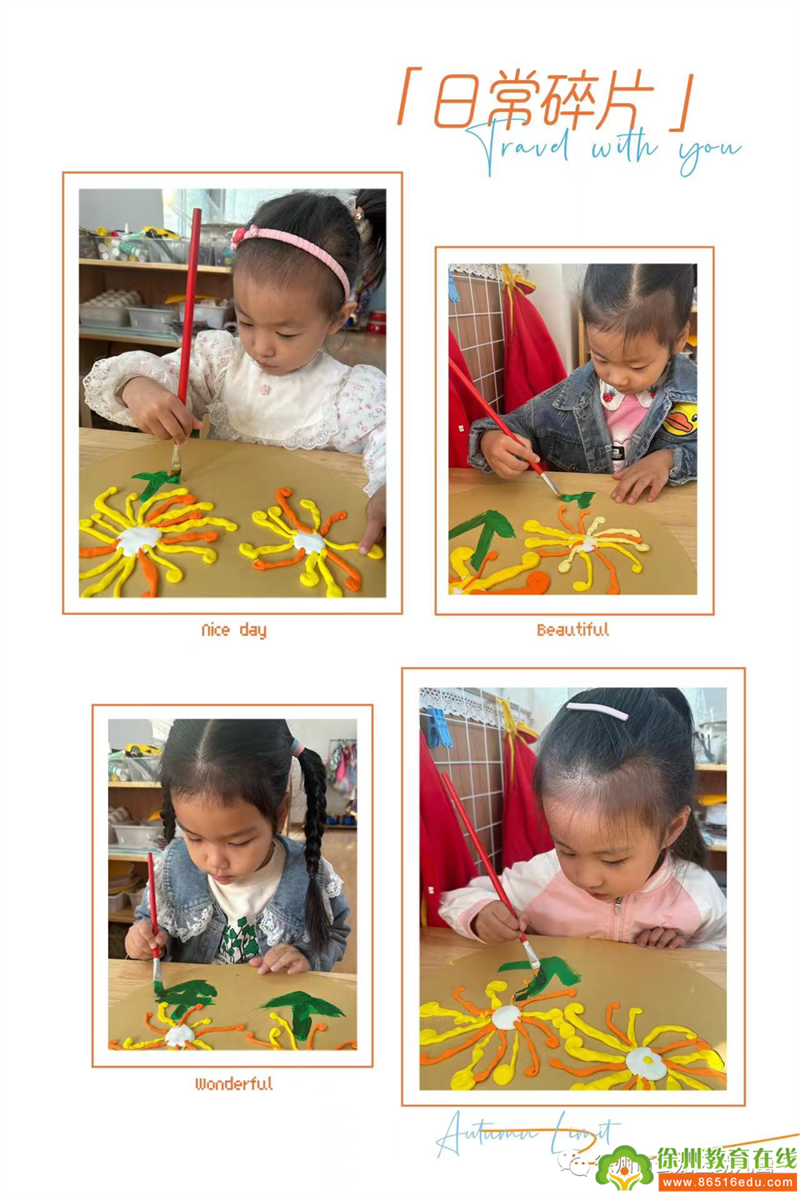 重阳节来临之际,各班教师根据幼儿年龄特点和幼儿“共话重阳”,从“重阳节”的故事里,了解了重阳节的由来和习俗;在重阳节的儿歌里,感受着“爱”与“被爱”;听爷爷奶奶岁月里的那些事儿;重温与祖辈间“爱与温情”的画面。