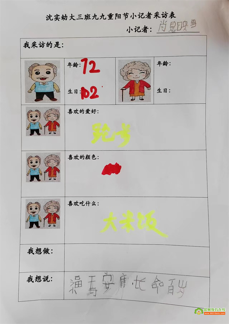 农历九月初九,是我国的传统节日——重阳节,又称为:老人节。尊老爱幼是我国的传统美德,为了让孩子们从小传承尊老爱幼的传统美德,从小学会感恩,沈场实验幼儿园开展了“童话重阳 孝心久久”主题活动,让孩子们学会关爱身边每一位老人。