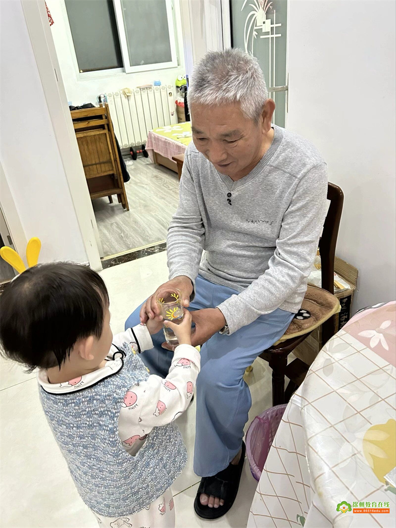 陪伴,是最长情的告白,需要陪伴的,不仅是孩子,还有身边的老人。孩子们在实际生活中开展各种“尊老、敬老、爱老”活动,在家给长辈们捶捶背、端端茶、抱一抱。孩子的温情“陪伴”,是老人们心底最大的安慰。