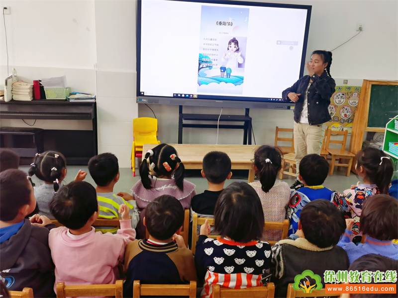 老师通过讲故事、听儿歌、观看视频与PPT等多种形式,让孩子了解重阳节的由来,在孩子的心中种下孝心和感恩的种子。
