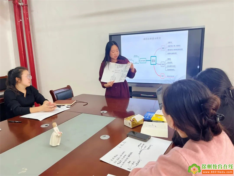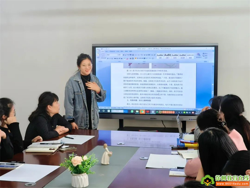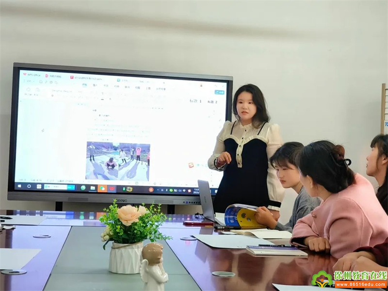 老师们在教研主任汤艳老师的带领下,聚焦“课程故事是什么”、“课程故事怎么写”、“课程故事撰写与注意事项”三方面展开交流,一起深入学习,共同撰写生动、有价值的课程故事。