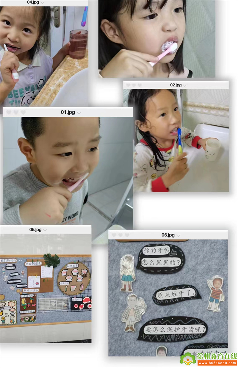 通过回忆、思考、动手绘画,呈现自己的牙齿以及如何保护牙齿等内容,孩子们对牙齿的秘密还是非常的感兴趣,对于自己的蛀牙也能正确的对待,好几名幼儿已经去牙科医生检查治疗了!希望这个好习惯孩子们能一直坚持下去!但是对于个别开始换牙的孩子我们没有及时的开展讨论,那么大班孩子换牙后应该怎么办呢?我们需要做哪些准备呢!我们将和孩子们一起继续探究更多有关牙齿的秘密!
