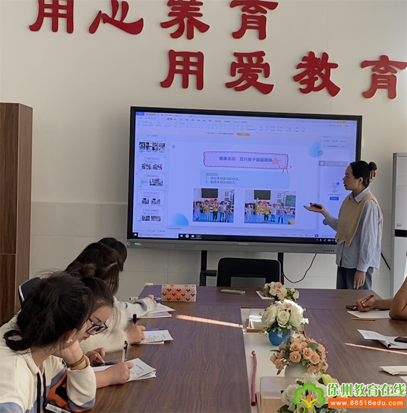 首先教研主任就幼儿园园本课程架构给大家做了介绍。然后就其课程内涵、特点、课程架构、组织实施体系、课程评价等相关知识给老师们进行了详细的梳理和解读。提出“如何做好园本课程”的问题,引领各位教师积极思考问题、踊跃发表建议,畅所欲言,共同研讨园本课程的更好开展。