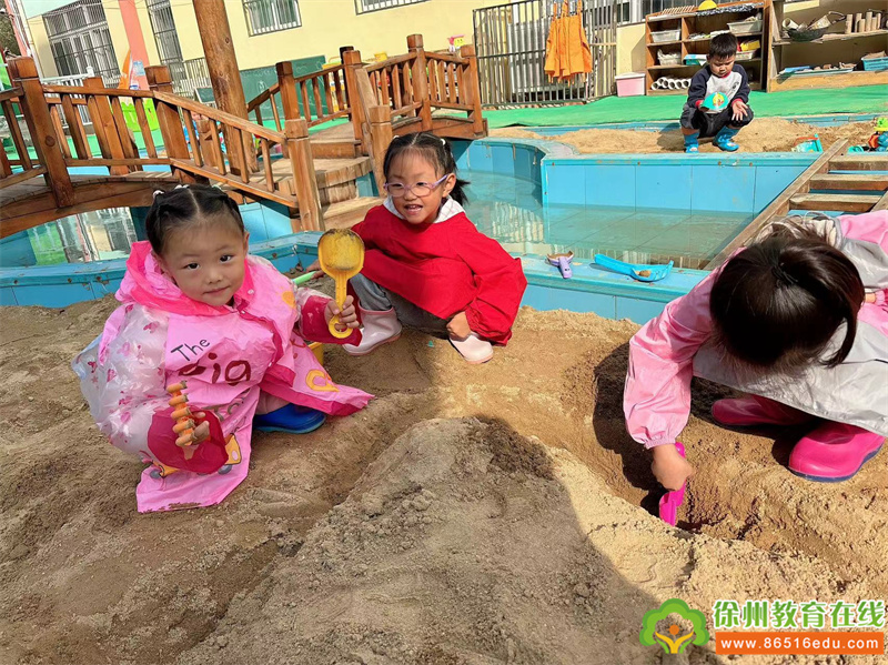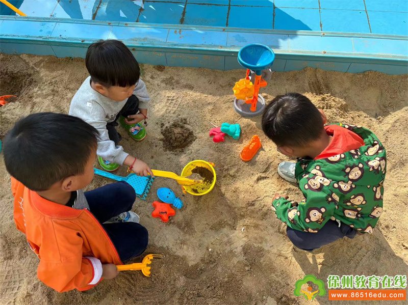 因为平时没有让孩子参加沙水活动,所以对于此次活动很新鲜。哪怕只有一块沙地,孩子们也会满足。在观察中,发现班级大部分孩子是可以玩水玩沙,很喜欢。
