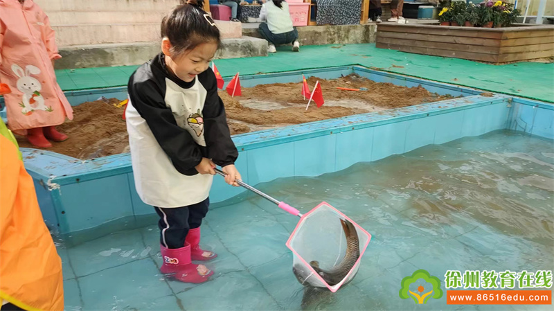 看呢!每个孩子都洋溢着笑脸,大家齐心合力,思考捞鱼的技巧并付诸行动。游戏是孩子的天性,游戏中蕴含着孩子发展的需要和教育契机,通过这一次的体验、观察,我们看到了孩子们探索的兴趣,让孩子在自然状态下得到教育的真谛。