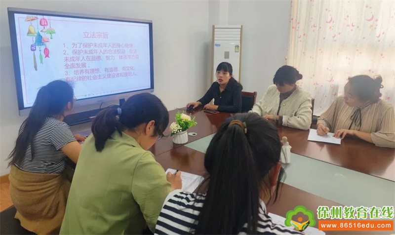 孙晋玲园长将《未成年人保护法》中关于教育机构,校园欺凌、交通安全、人身权益保护等相关条文,通过典型案例和视频相结合,指导教职工如何保护自己,同时也呼吁全体教职工要知法、守法、懂法、用法,不做违纪、违规、违法的事。