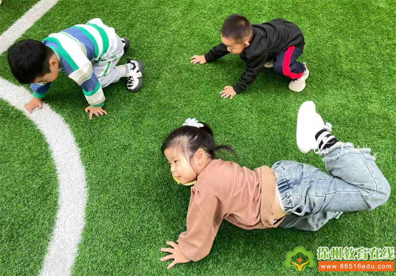 为了促进孩子们走、跑、跳、攀、爬等大肌肉动作的发展,我们从孩子的年龄特点出发,开展了有关身体动作的相关活动内容,让孩子们在开心快乐的环境中加深对身体的了解。