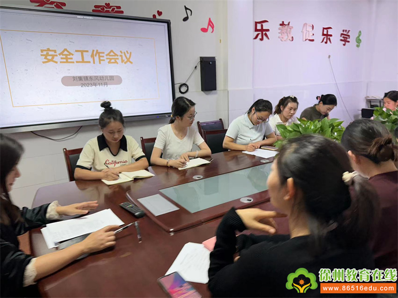 为切实加强幼儿园及周边安全管理,扎实做好11月份校园安全工作,确保各项工作平稳有序开展。2023年11月1日,铜山区刘集镇东风幼儿园召开了安全工作专题会议。 一系列安全工作会议进一步增强了幼儿园安全管理的意识,落实了校园安全管理责任。今后,幼儿园将进一步细化安全管理各项措施,严把每一个环节、落实每一处细节,筑牢校园安全防线,全力保障校园环境的安全稳定。
