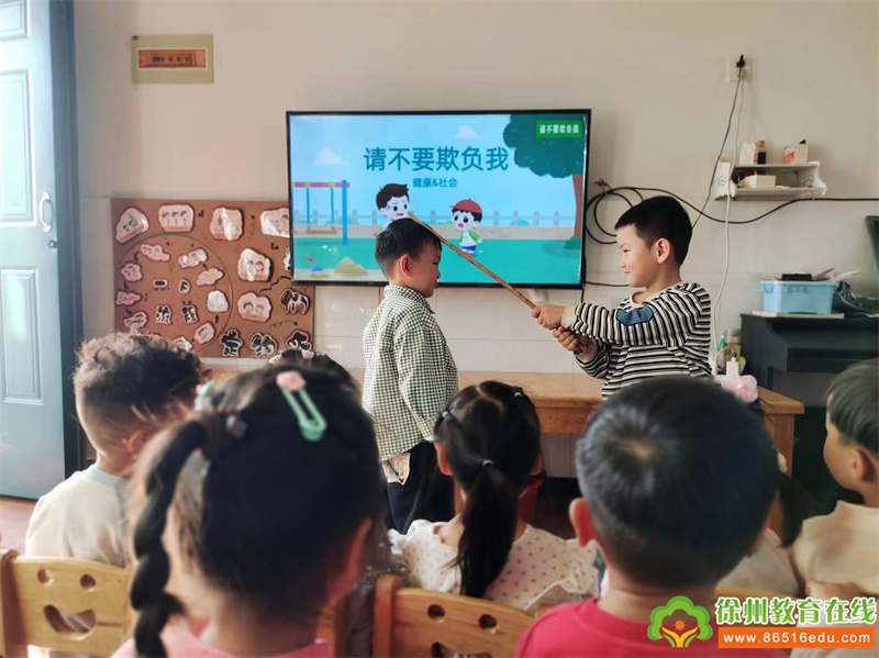 各班老师利用多媒体直观的展示了校园暴力和欺凌给受害者带来的伤害及后果,向小朋友讲解了校园欺凌、暴力的常识。通过情景表演方式,让小朋友知道暴力和欺凌的危害性,小朋友懂得发生矛盾时及时找老师解决。