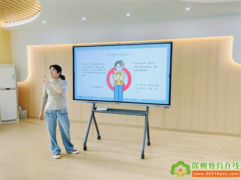 李杰主任结合本园实际带领全体教师从“师德现状及警示”、“幼儿教师应具备的师德师风”以及“怎样成为具有良好师德的教师”这三个方面深入分析,诫勉全体教师严格遵守幼儿园教师行为准则,规范执教行为,要求坚持言传与身教相统一,遵循幼教规律,时刻自重、自省、自警、自励,做以德立身、以德立学、以德施教的好老师。