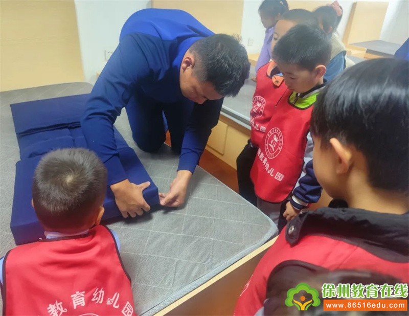 紧接着我们来到了消防员生活区域参观,走进消防员宿舍,看到整齐划一的物品摆放、有棱有角的内务设置,近距离感受消防员叔叔的“生活”,给消防员叔叔点赞!